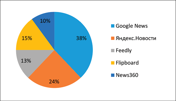 На основе вышеперечисленных данных разработана диаграмма популярности новостных источников в соответствии с рисунком.