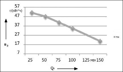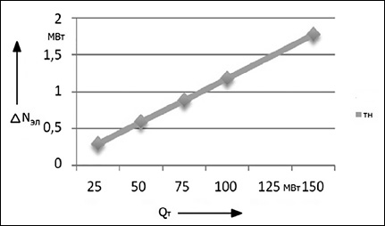 Рис. 2. Снижение удельного расхода условного топлива а) и прироста выработки электрической мощности б) в зависимости от тепловой нагрузки Примечание: составлен авторами по результатам данного исследования