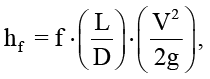 где f – коэффициент гидравлического трения; L – длина подводящего трубопровода, м; D – его внутренний диаметр, м; V – средняя скорость потока, м/с; Q – расход воды, м3/с; g – ускорение свободного падения, м/с2.