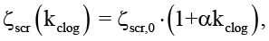 где ζscr,0 – коэффициент сопротивления чистой решетки; kclog – безразмерный параметр засорения; α – сценарный коэффициент роста сопротивления.